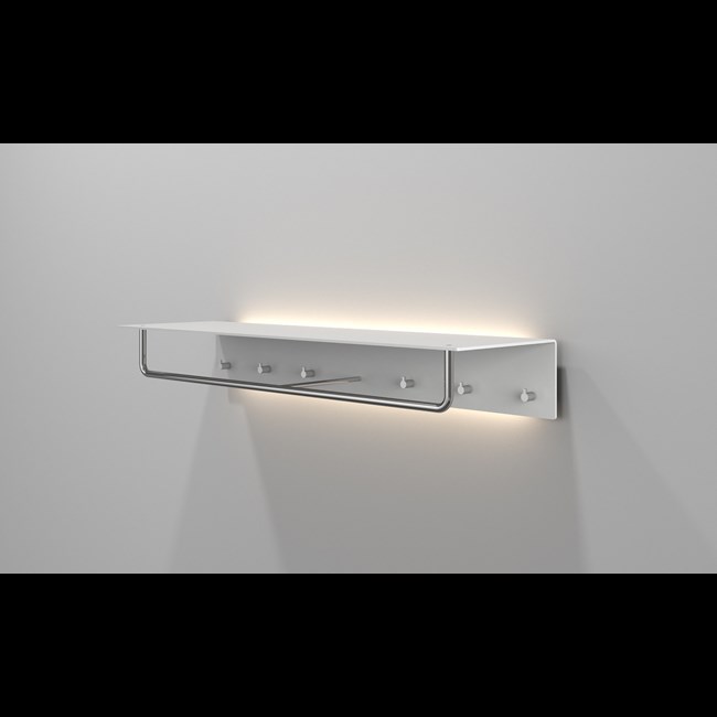 Hattehylde med 6 kroge og bøjlestang. Hattehylden med LED bagpladen tilfører garderoben hyggebelysning rundt om hattehylden. Hattehylden fåes også i 200mm med 2 kroge og 600mm med 4 knager. Flot opbevaring af tøj i garderoben. Alle FROST garderobehylder har unikke designs, som du ikke finder andre steder. Fokus er ikke kun på kvalitet og funktion, men også på æstetik og stil. Sammen med FROST får du en flot hylde med et karakteristisk, skulpturelt look, der vil komplementere ethvert moderne hjem. For dem, der sætter pris på æstetik og ønsker at tilføje personlighed og kreativitet til deres hjem, tilbyder vi modeller med forskellige finish. De passer perfekt ind i klassiske eller moderne hjem eller kontorer. Ydermere kan hylderne kombineres med resten af vores sortiment af FROST entré- og garderobeprodukter. For eksempel vores bøjler, skohylder, stumtjenere eller spejle. Alle disse møbler vil se elegante ud i entréen og byde dig og dine gæster velkommen. Hylden leveres komplet med U4000-1000 LED bagplade og transformer. LED farvetemperatur: 2700K. Sættet leveres i 2 kasser.