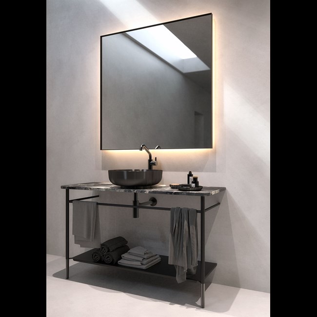 Träumen Sie von eleganten und schlichten Badmöbeln? Mit diesem Möbelset erhalten Sie ein komplettes Set in stilvollem Design. Das Set besteht aus einer 120cm breiten Steinwaschtischplatte 1943-1201 in Van Gogh Grey mit einer Aussparung für ein Waschbecken. Das Gestell F1943-1200 ist in schwarz matt/schwarz gebürstet gehalten. Waschbecken 1942, Ablaufventil 1990, Armatur 1992 und Siphon 1997 sind ebenfalls aus gebürstetem schwarz. Das Gestell wird mit einer Wandhalterung an der Wand befestigt. Alle Produkte sind auch einzeln erhältlich. Dieses Set bietet Ihnen eine komplette Ausstattung für Ihr Badezimmer. Ein passendes Unterregal für das Gestell ist separat erhältlich. Das Set wird in sechs separaten Paketen geliefert.