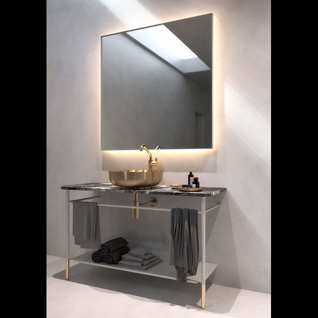 Träumen Sie von eleganten und schlichten Badmöbeln? Mit diesem Möbelset erhalten Sie ein komplettes Set in stilvollem Design. Das Set besteht aus einer 120cm breiten Steinwaschtischplatte 1943-1201 in Van Gogh Grey mit einer Aussparung für ein Waschbecken. Das Gestell F1943-1200 ist in weiß matt/gold gebürstet gehalten. Waschbecken 1942, Ablaufventil 1990, Armatur 1992 und Siphon 1997 sind ebenfalls aus gebürstetem gold.
