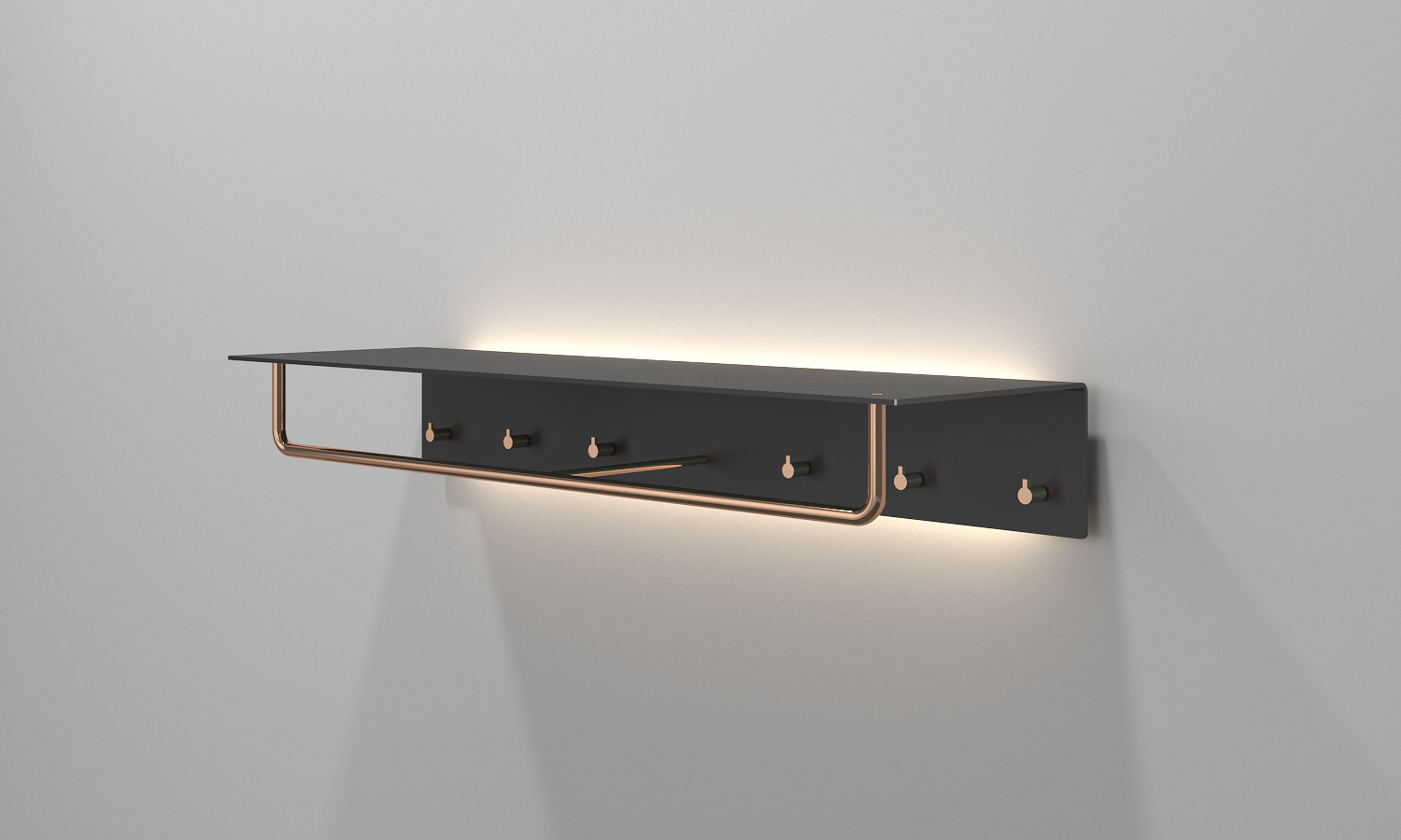 COAT RACK 4017 WITH LED » MATT BLACK/POLISHED COPPER