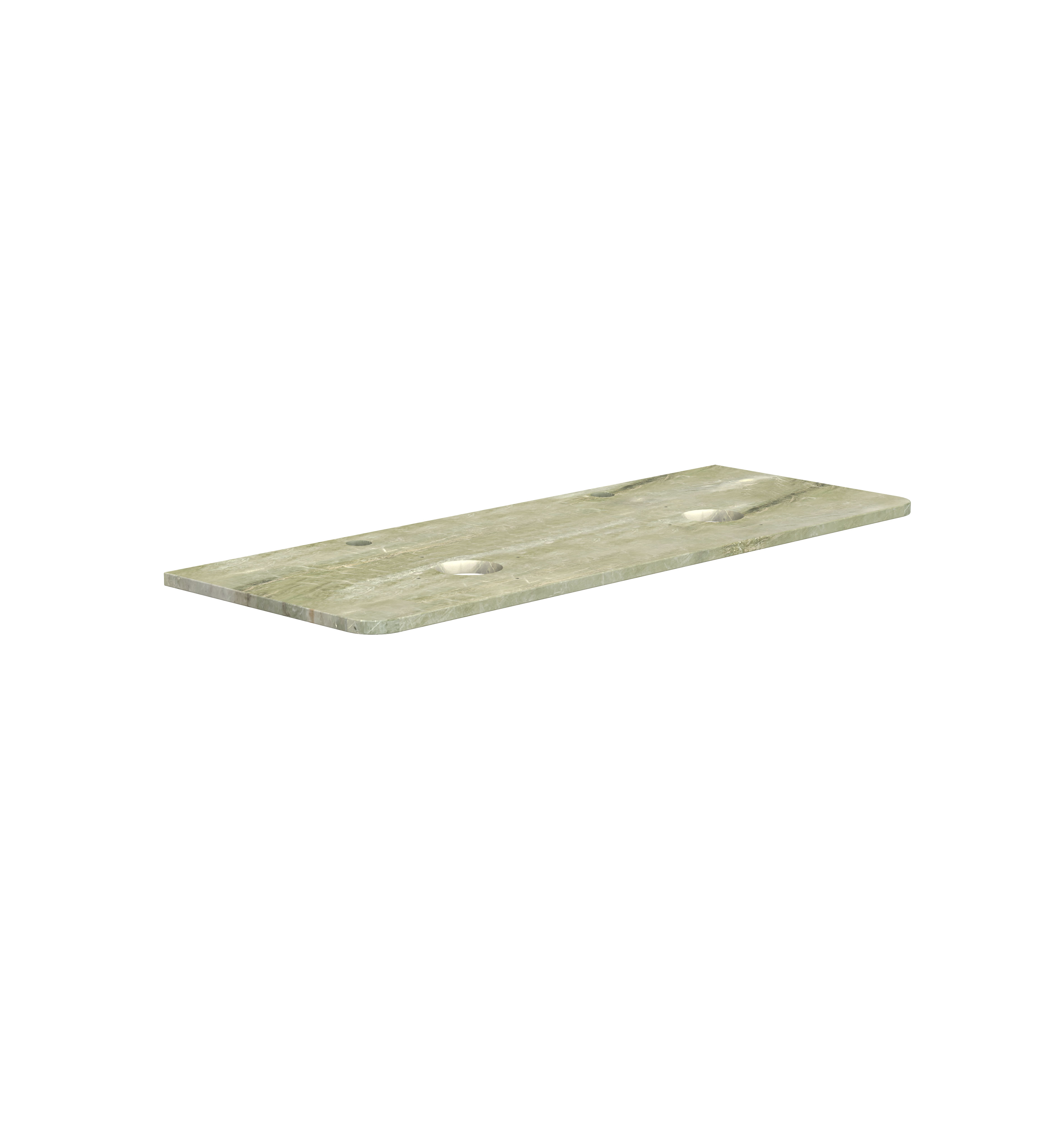 Plan de travail en pierre pour 2 lavabos, fabriqué en pierre naturelle de 19 mm, conçu pour le châssis de table 1943-1200 (vendu séparément). La plaque comporte des trous préfabriqués pour deux lavabos ainsi que deux trous pour les robinets situés derrière les lavabos, ce qui facilite le montage des lavabos et des robinets. L’arrière est équipé de trous filetés pour les pieds de console 1943-1200, disponibles dans de nombreuses combinaisons, ce qui permet d’harmoniser facilement avec l’aménagement existant de la salle de bain ou de créer une nouvelle configuration originale. Le plan de travail est également disponible en 600 mm pour un lavabo ou en 1200 mm pour un lavabo.