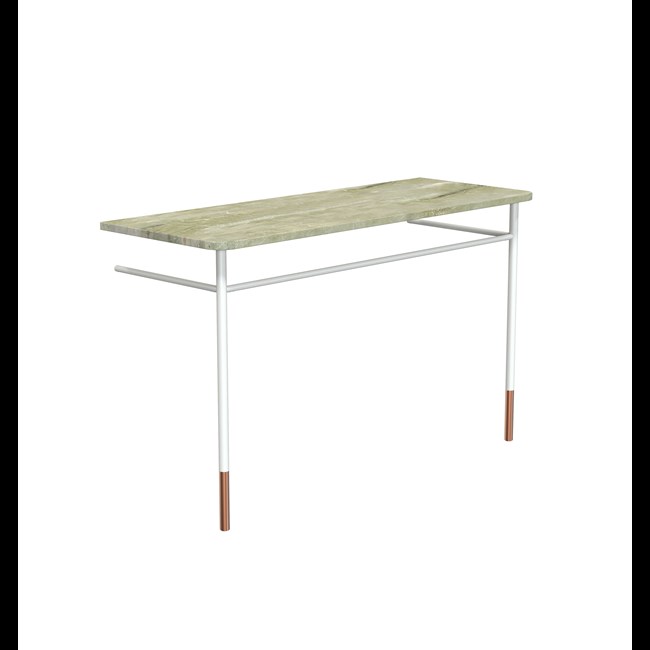 Vous rêvez d'une console élégante et épurée ? Ce pack de meubles vous offre un ensemble complet au style raffiné. Il comprend un plateau en pierre de 120 cm (FR-1943-1200) couleur Forest Green et une structure en blanc mat/cuivre brossé (F1943-1200). Cette structure se fixe au mur grâce à une tringle. Les éléments peuvent également être achetés séparément. Ce pack vous permet d'aménager votre entrée dans un ensemble complet. Une étagère basse (F1994-1200) pour la structure est disponible séparément. La livraison se fait en 3 colis.