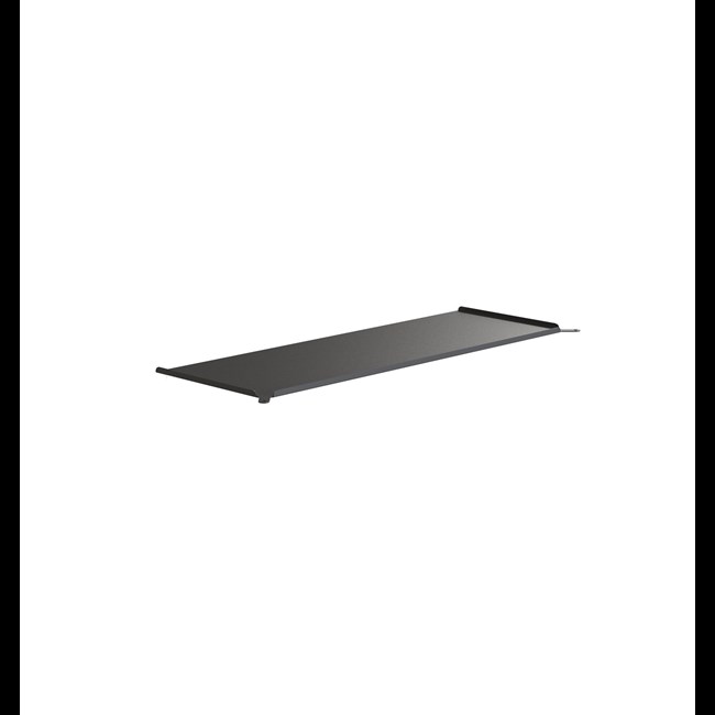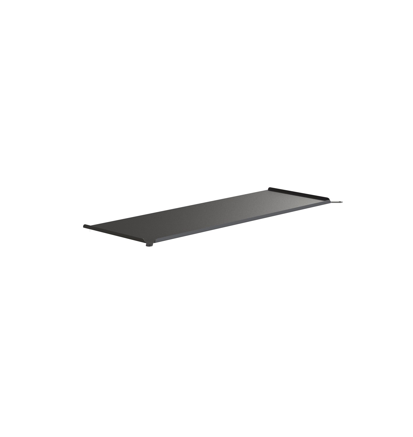 Plateau pour piètement de table 1943-1201 ou 1943-1202 . Ce plateau peut servir de rangement pour une trousse de toilette ou des serviettes. Il se place entre les barres noires et l'extrémité des pieds de la table. Il est recommandé de l'installer lors du montage de la table, car son installation ultérieure nécessite le démontage de celle-ci.