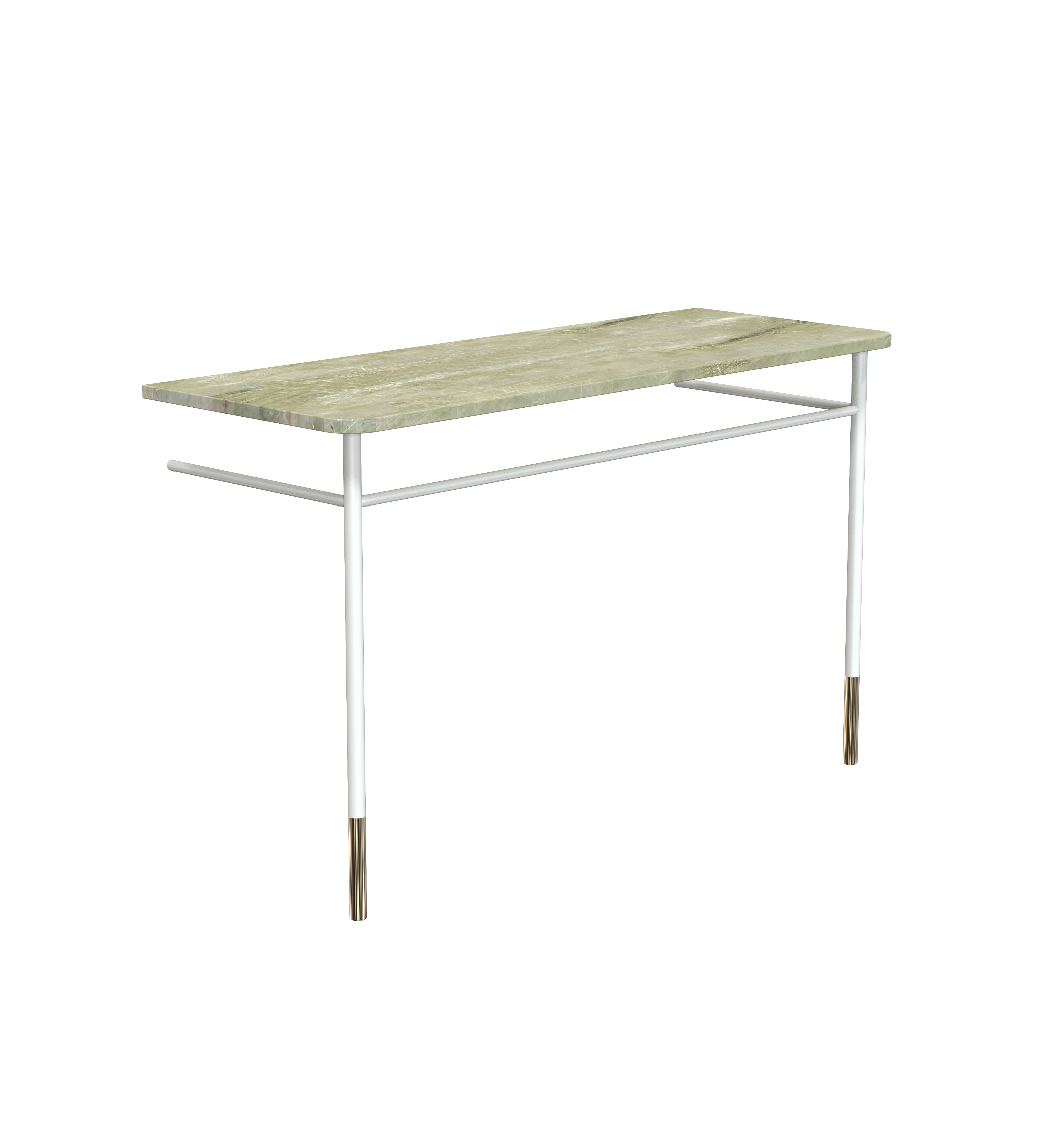 Droomt u van een elegante en eenvoudige consoletafel? Met dit meubelpakket krijgt u een complete set in een stijlvolle look. De set bestaat uit een 120 cm breed stenen tafelblad FR-1943-1200 in Forest Green. Het tafelonderstel F1943-1200 is uitgevoerd in matwit/gepolijst goud. Het tafelonderstel wordt aan de muur bevestigd met een montagestrip. De producten zijn ook los verkrijgbaar. Met dit pakket krijgt u een complete set voor uw entree. Een onderplank (F1994-1200) voor het tafelonderstel is apart verkrijgbaar. De set wordt in 3 afzonderlijke pakketten geleverd.