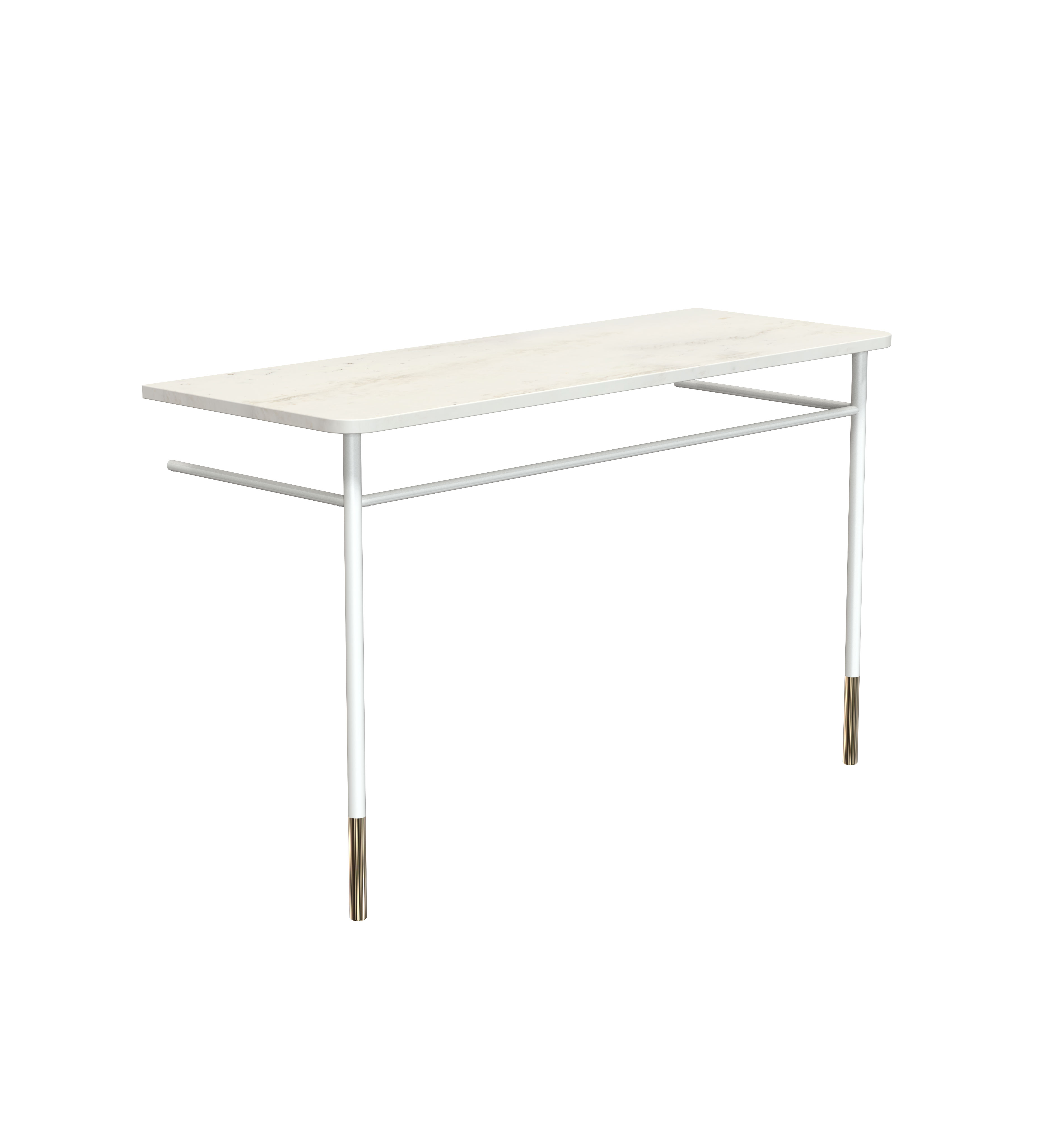 Drømmer du om et elegant og enkelt konsollbord? Med denne møbelpakken får du et komplett sett i et stilig utseende. Settet består av en 120 cm steinbordplate FR-1943-1200 i Oriental White. Bordrammen F1943-1200 er i matt hvit/polert gull. Bordrammen monteres på veggen på en monteringslist. Produktene kan også kjøpes som separate elementer. I denne pakken får du et komplett oppsett for entréen din. En nedre hylle (F1994-1200) til bordrammen kan kjøpes. Settet leveres i 3 separate pakker.
