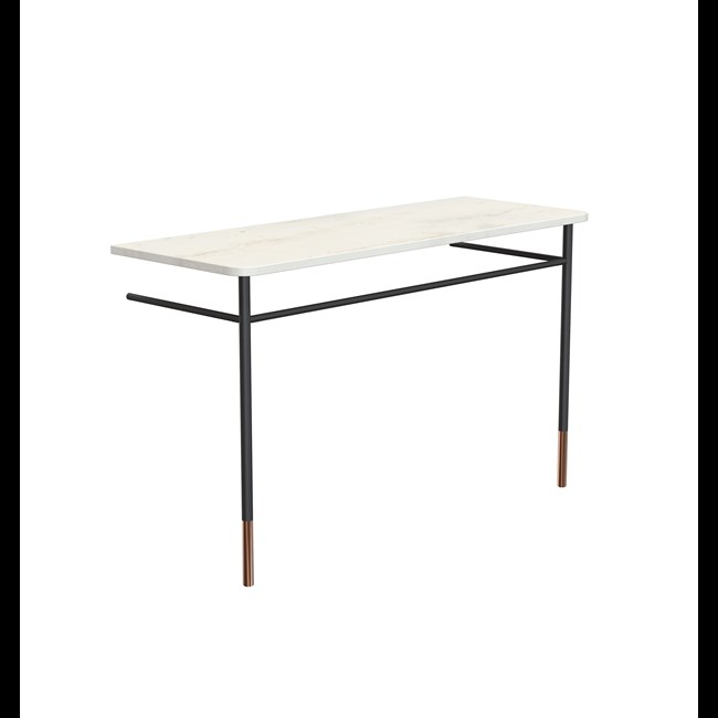 Drømmer du om et elegant og enkelt konsollbord? Med denne møbelpakken får du et komplett sett i et stilig utseende. Settet består av en 120 cm steinbordplate FR-1943-1200 i Oriental White. Bordrammen F1943-1200 er i matt svart/polert kobber. Bordrammen monteres på veggen på en monteringslist. Produktene kan også kjøpes som separate elementer. I denne pakken får du et komplett oppsett for entréen din. En nedre hylle (F1994-1200) til bordrammen kan kjøpes. Settet leveres i 3 separate pakker.