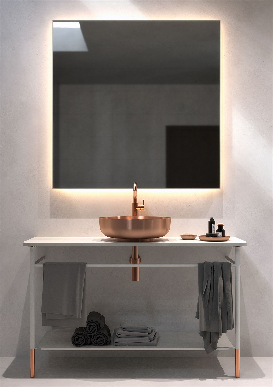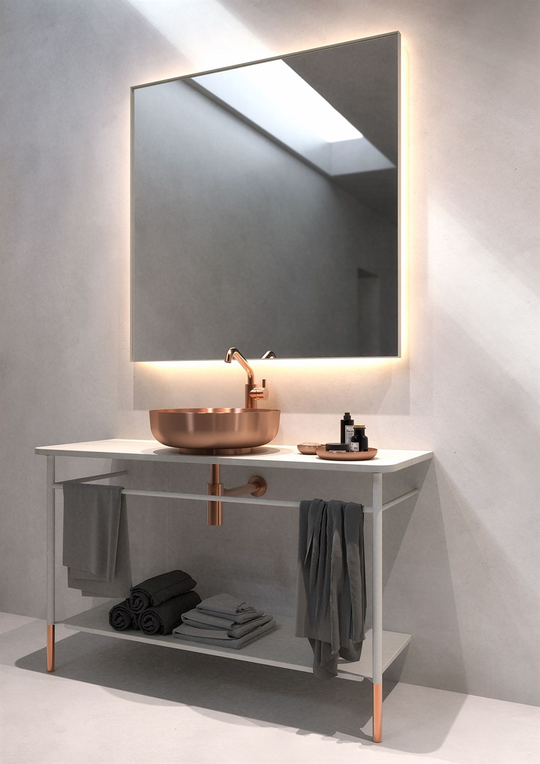 BADEROMSMØBELSETT 3082 » ORIETNTAL WHITE/MATT HVIT/BØRSTET KOBBER