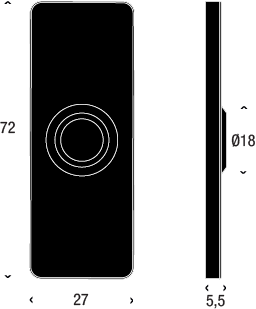 Denne rektangulære ringeklokken fra FROST har et unikt og elegant design. Den måler 27x75x5 mm og har en rund trykknapp.