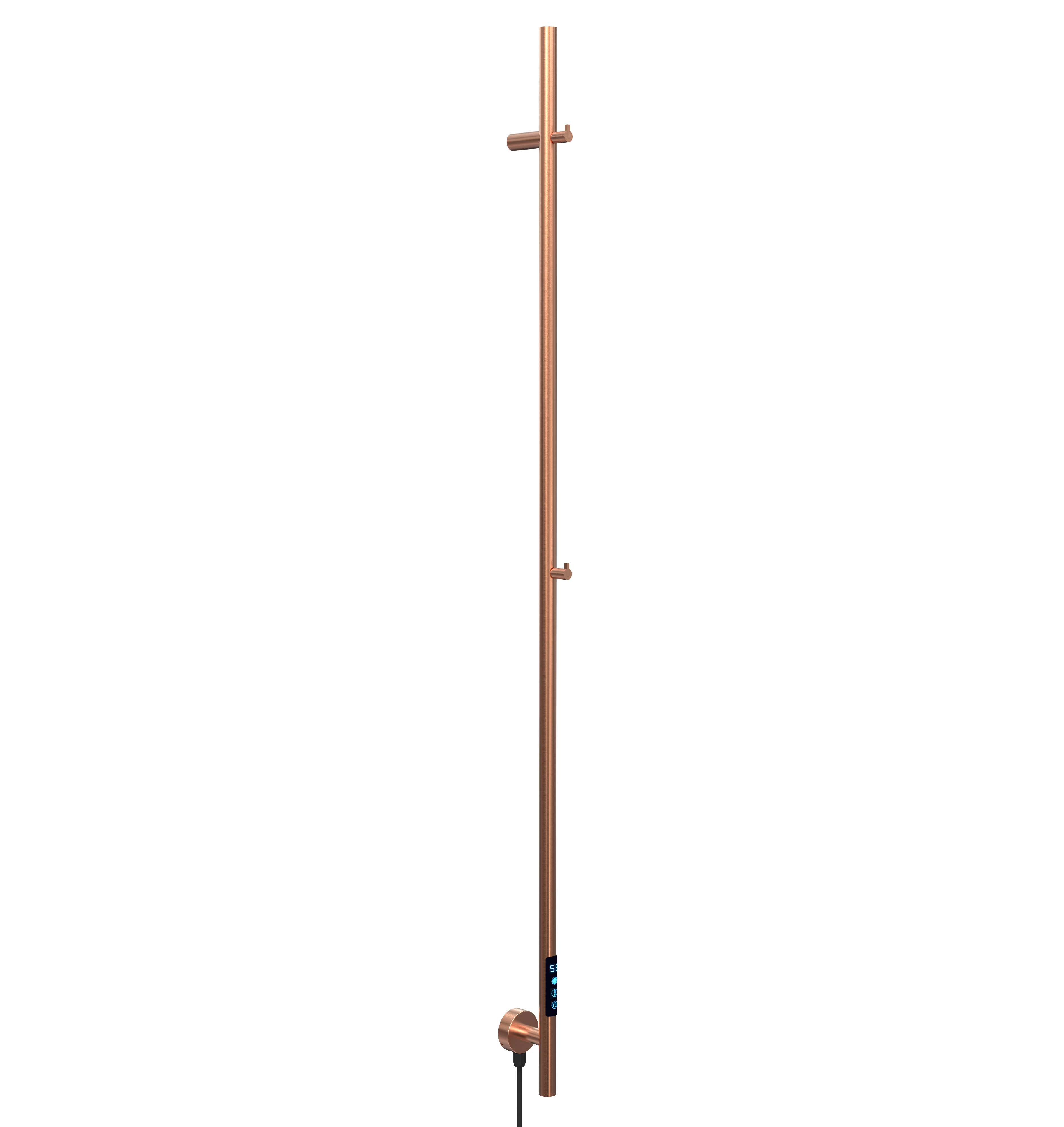 Nova2 elektrisk håndkletørker. Leveres med 150 cm ledning og støpsel. 220 V. Kan kobles direkte til strøm.