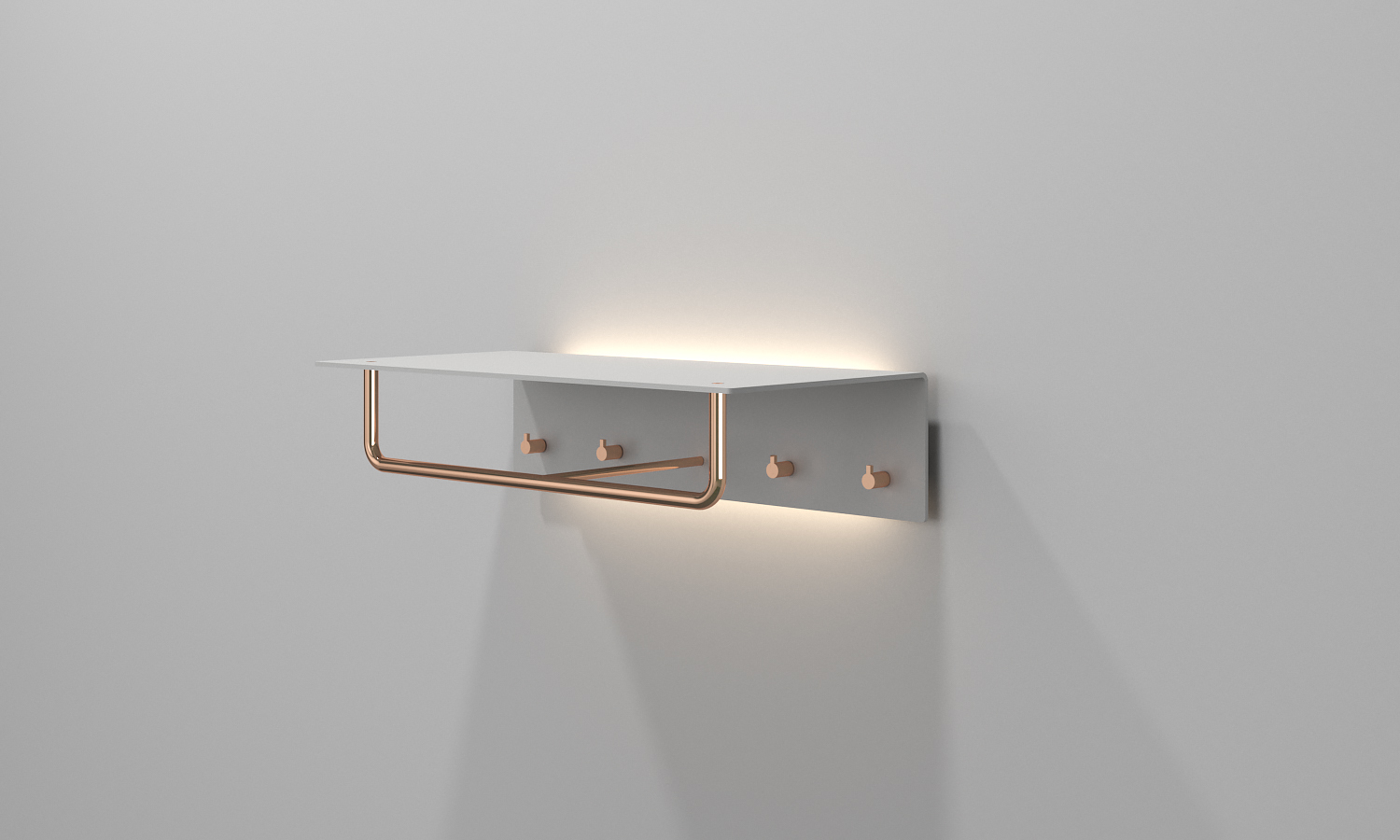 COAT RACK 4003 WITH LED » MATT WHITE/POLISHED COPPER